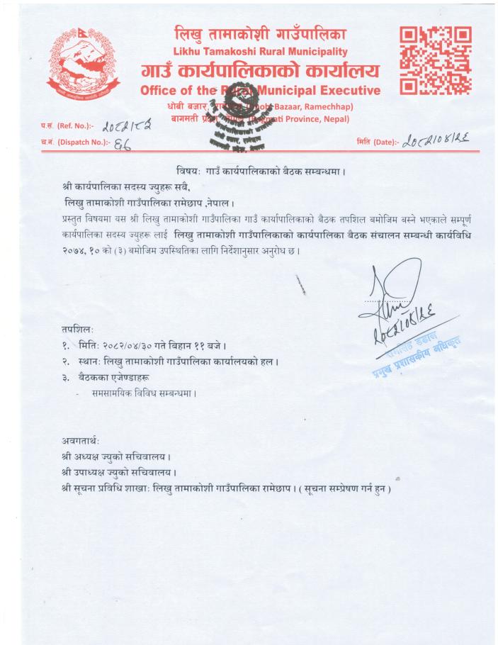 गाँउ कार्यपालिकाको बैठक सम्बन्धमा ।