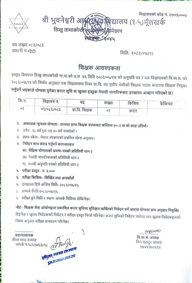 शिक्षक आवश्यता
