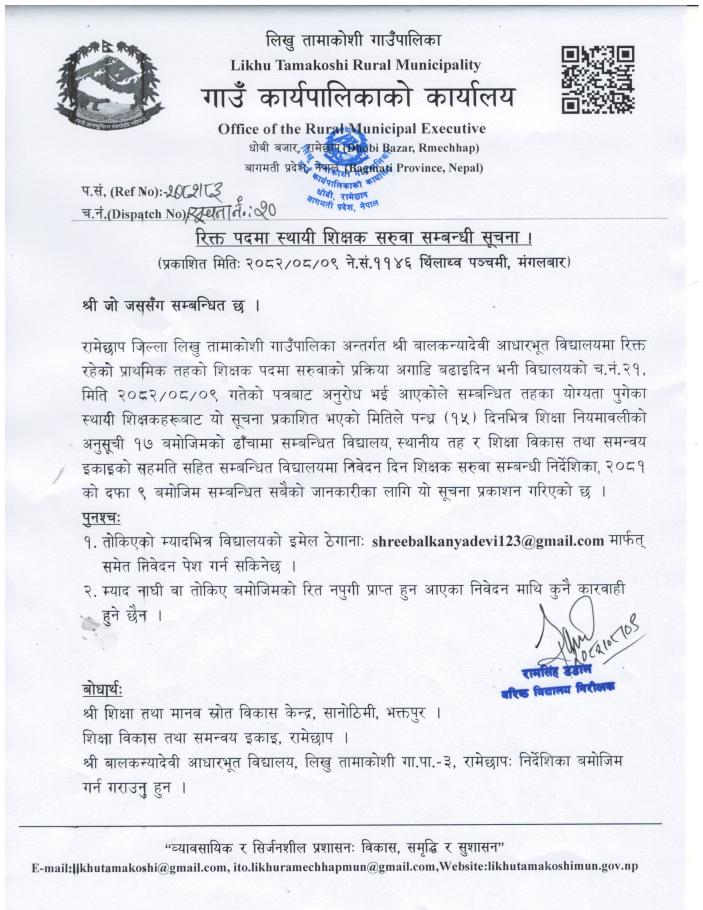 रिक्त पदमा स्थायी शिक्षक सरुवा सम्बन्धी सूचना !