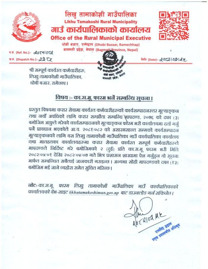 » का.स.मू. फारम भर्ने सम्बन्धि सूचना ।