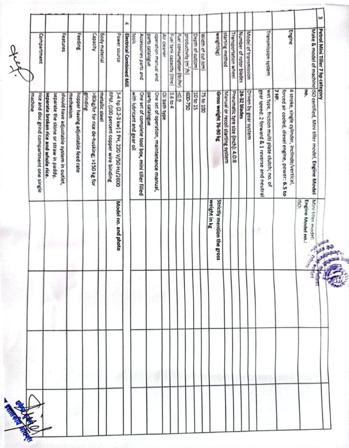 कृषि यन्त्र उपकरणको स्पेशिफिकेसन