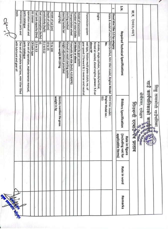 कृषि यन्त्र उपकरण खरिदको लागि शिलबन्दी प्रस्ताव माग गरिएको सम्बन्धी सूचना