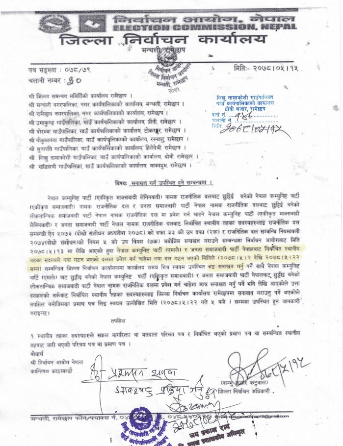 जिल्ला निर्वाचन कार्यालयकाे सूचना सम्बन्धमा ।
