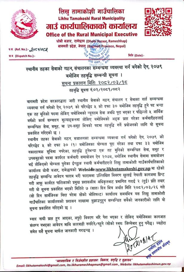 गाउँपालिकाको प्रशासकीय भवनको लागि नि शुल्क जग्गा उपलब्ध गराउने सम्बन्धी सुचना ।