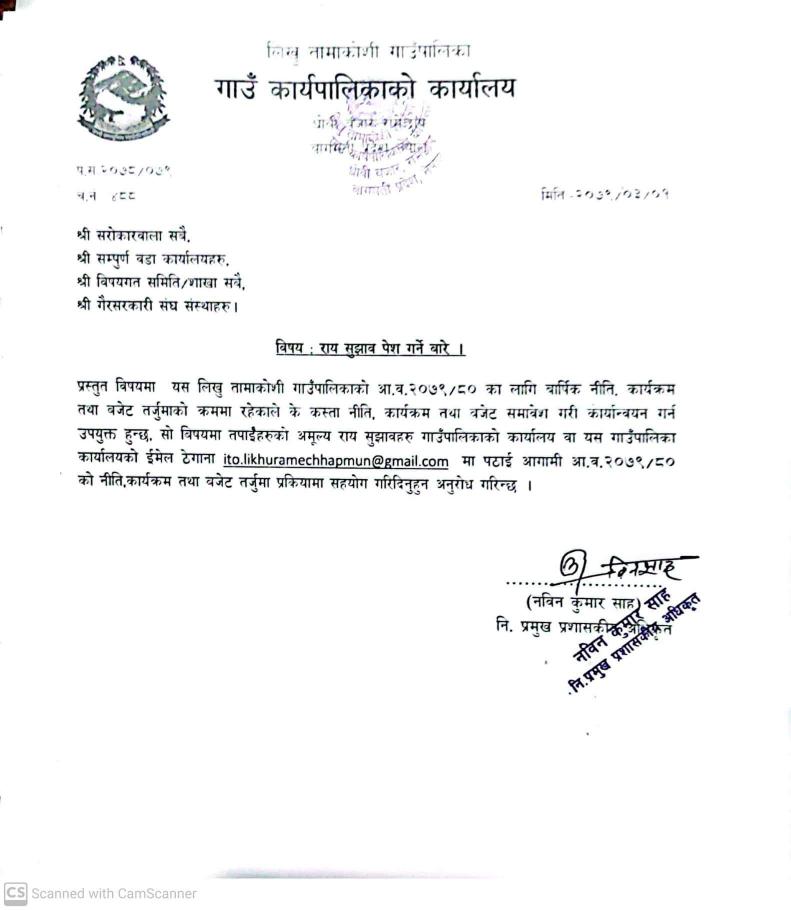 नीति तथा कार्यक्रमको लागि सुझाव उपलब्ध गराइदिनु हुन