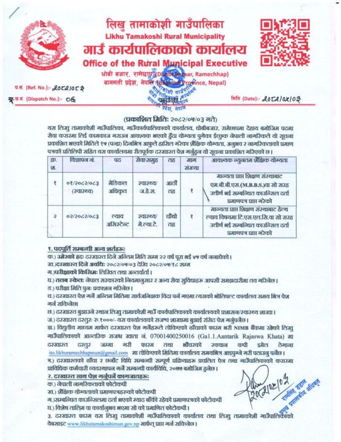 पदपूर्ति सम्बन्धी सूचना !!