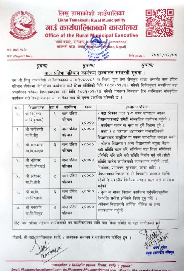 » बाल प्रतिभा पहिचान कार्यक्रम सञ्चालन सम्बन्धी सूचना ।