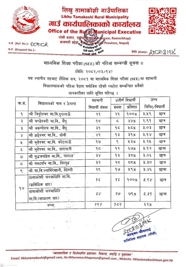 माध्यमिक शिक्षा परिक्षा SEE को नतिजा सम्बन्धमा सूचना ।।