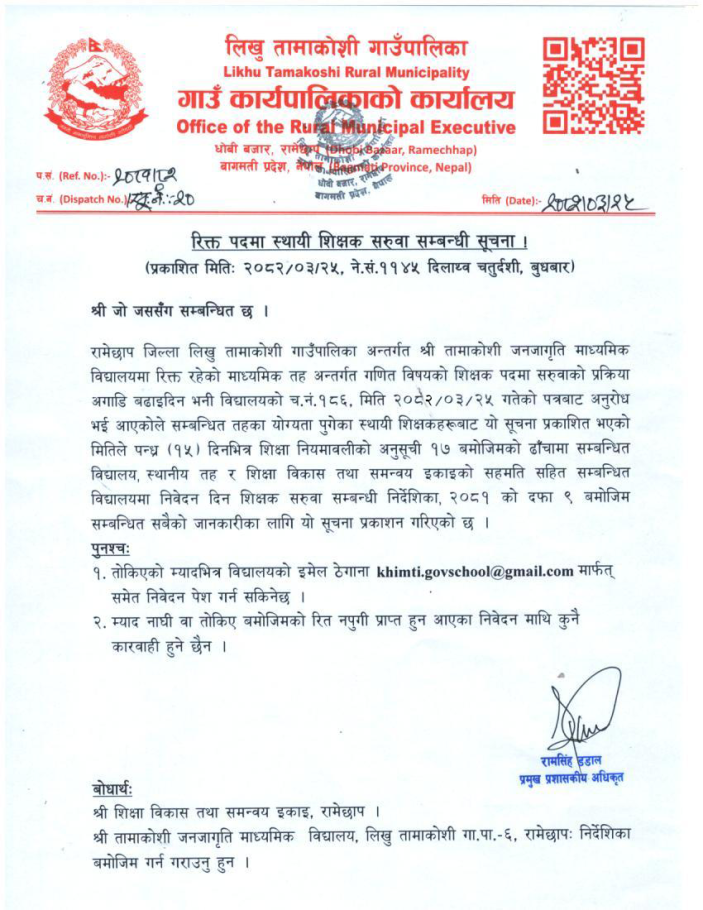 » रित्त पदमा स्थायी शिक्षक सरुवा सम्बन्धी सूचना ।
