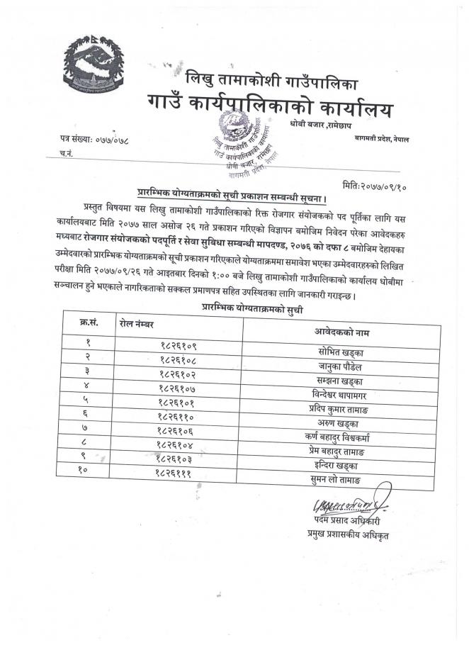 रोजगार संयोजकको प्रारम्भिक योग्यताक्रमको सूची प्रकाशन सम्बन्धि सूचना ।