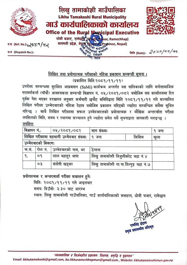 » लिखित तथा प्रयोगात्मक परीक्षाको नतिजा प्रकाशन सम्बन्धी सूचना ।