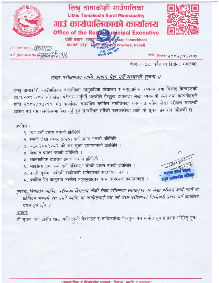 » लेखा परीक्षणका लागि आशय पेश गर्ने सम्बन्धी सूचना !