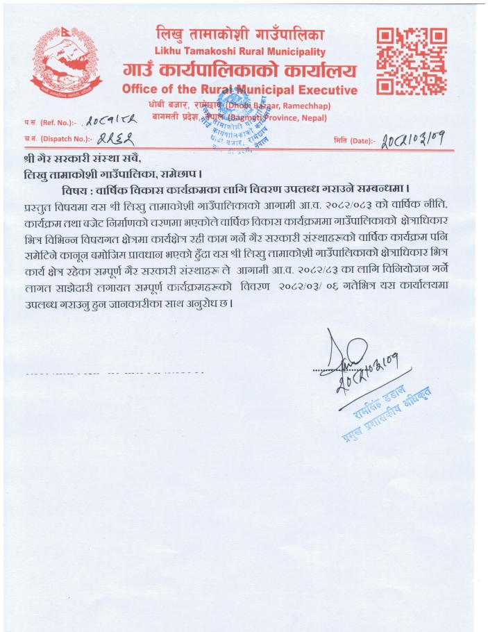 वार्षिक विकास कार्यक्रमका लागि विवरण उपलब्ध गराउने सम्बन्धमा ।