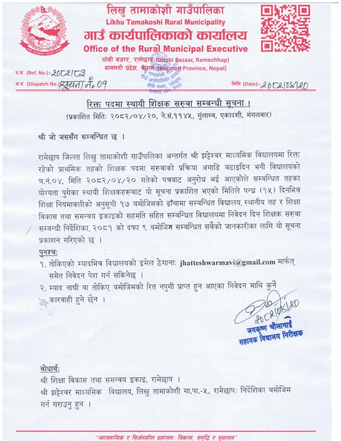 गाउँपालिकाको प्रशासकीय भवनको लागि नि शुल्क जग्गा उपलब्ध गराउने सम्बन्धी सुचना ।