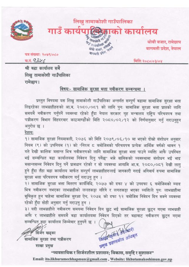 » सामाजिक सुरक्षा भत्ता नवीकरण सम्बन्धमा । श्री वडा कार्यालय सबै