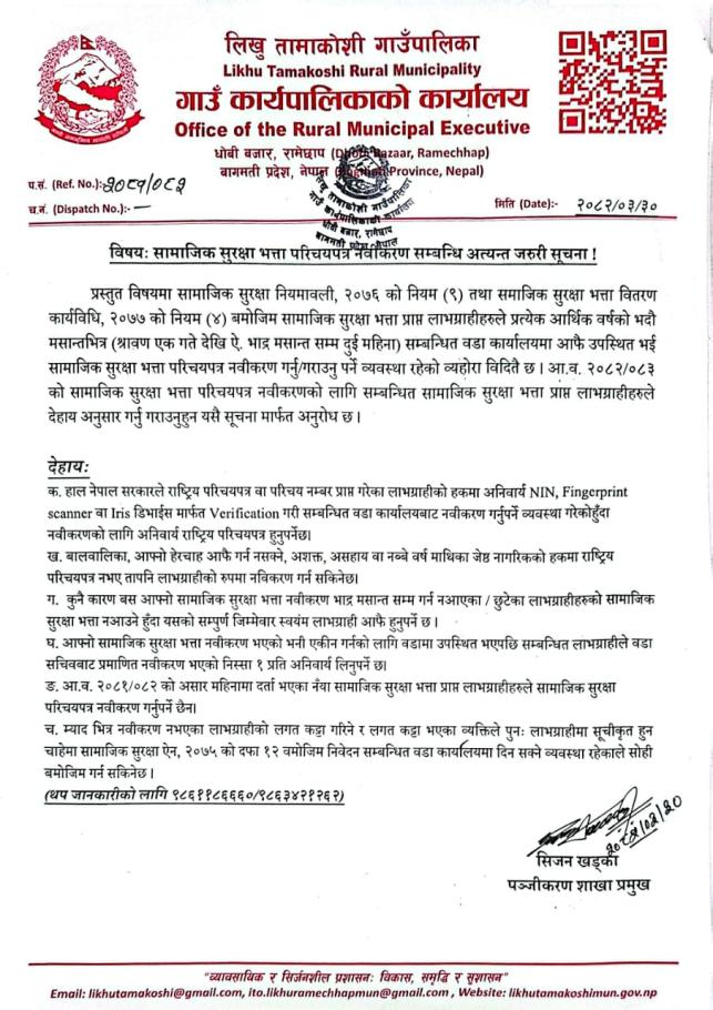» सामाजिक सुरक्षा भत्ता परिचयपत्र नवीकरण सम्बन्धि अत्यन्त जरुरी सूचना !
