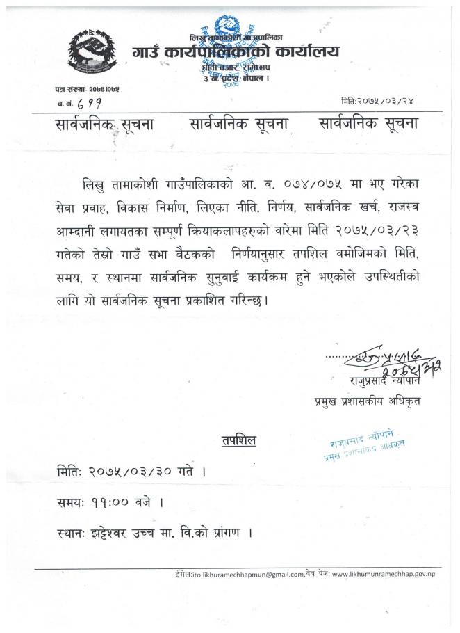 गाउँपालिकाको प्रशासकीय भवनको लागि नि शुल्क जग्गा उपलब्ध गराउने सम्बन्धी सुचना ।