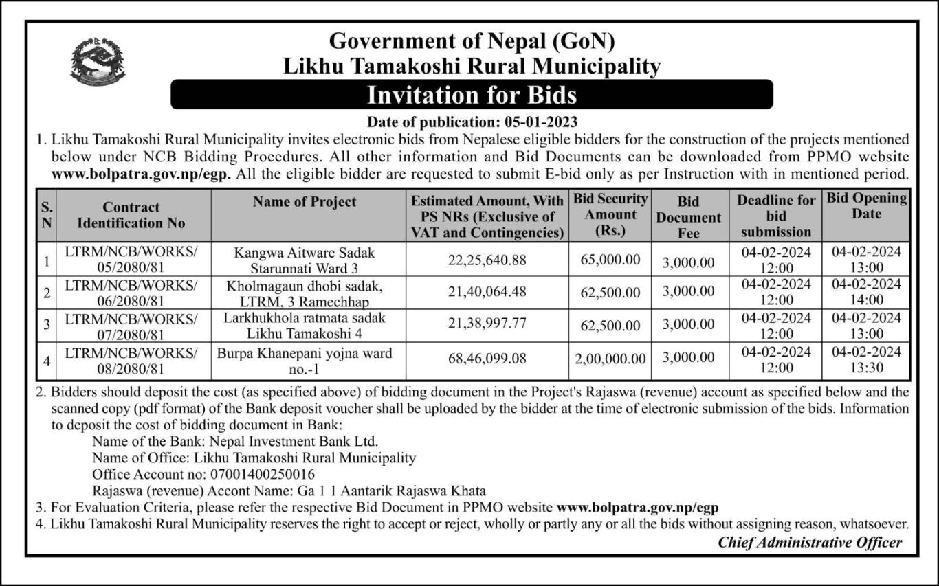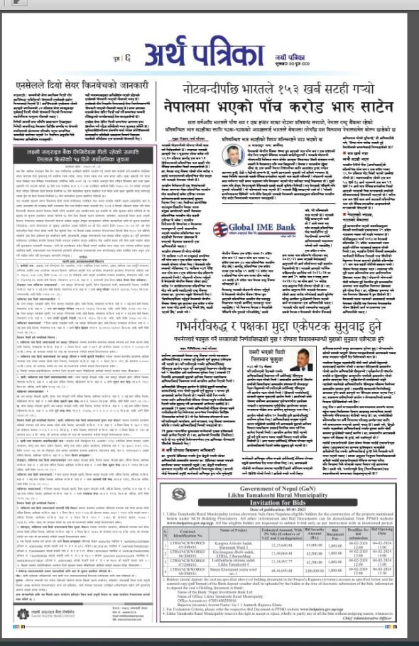 Invitation for Bids (Construction of Nagdaha Primary Health Post Ward No-5)