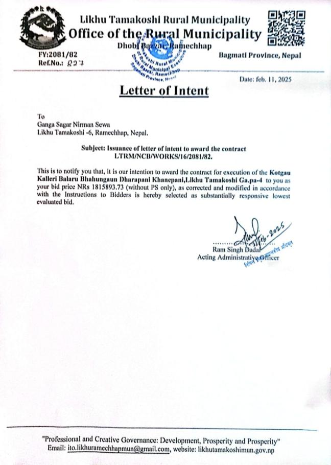 तिल्पुङ वडा कार्यालय भवन निर्माणको बोलपत्र आव्हान सम्बन्धी सूचना