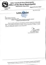 » Letter of Intent (LTRM/NCB/WORKS/07/079/80 Banauti Khola duragau katari bhadaure Sinchai Yojna)